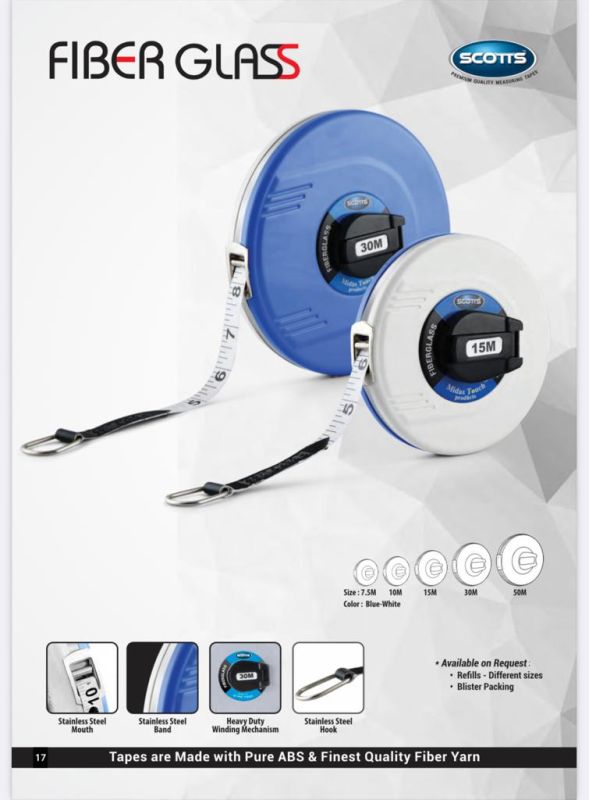 Leading Manufacturers, Exporters, Wholesaler, Trader and Importer of ABS Solzo Measuring Tape and Fiberglass Kuber X 30m Measuring Tape from Delhi.